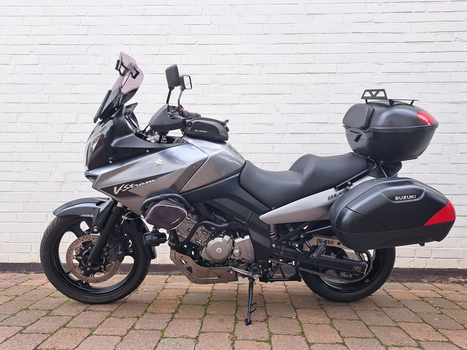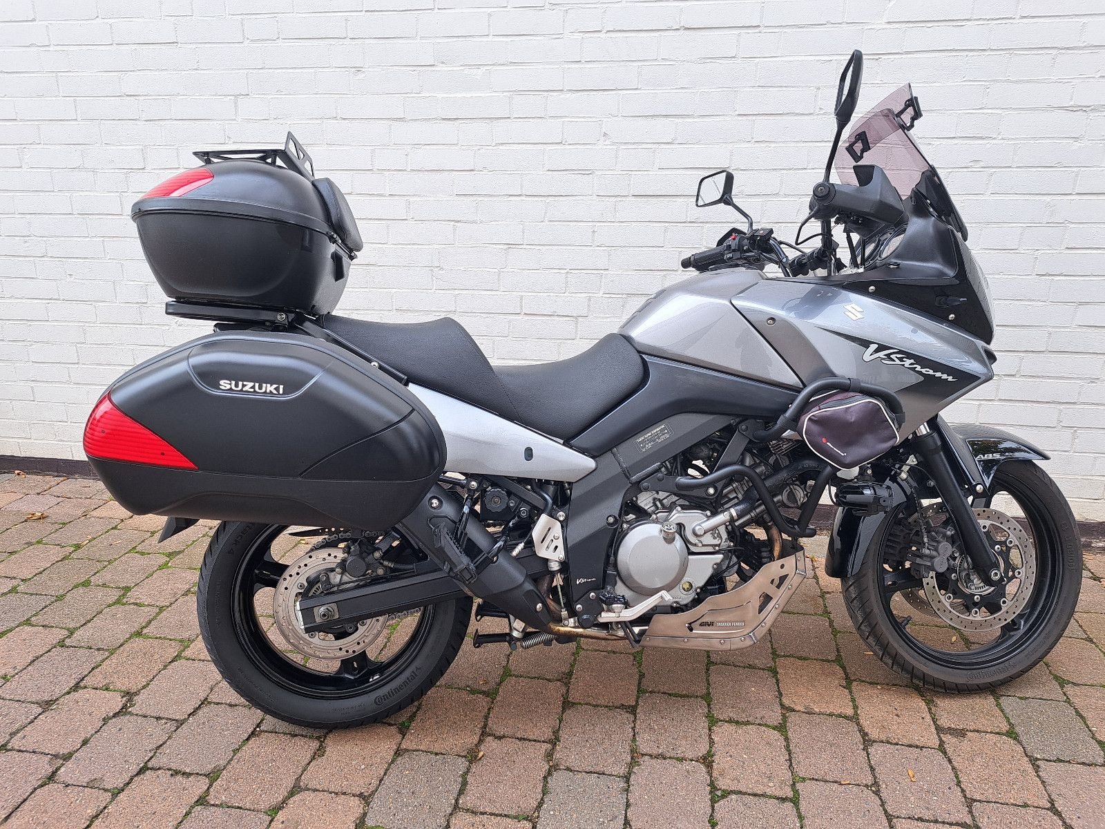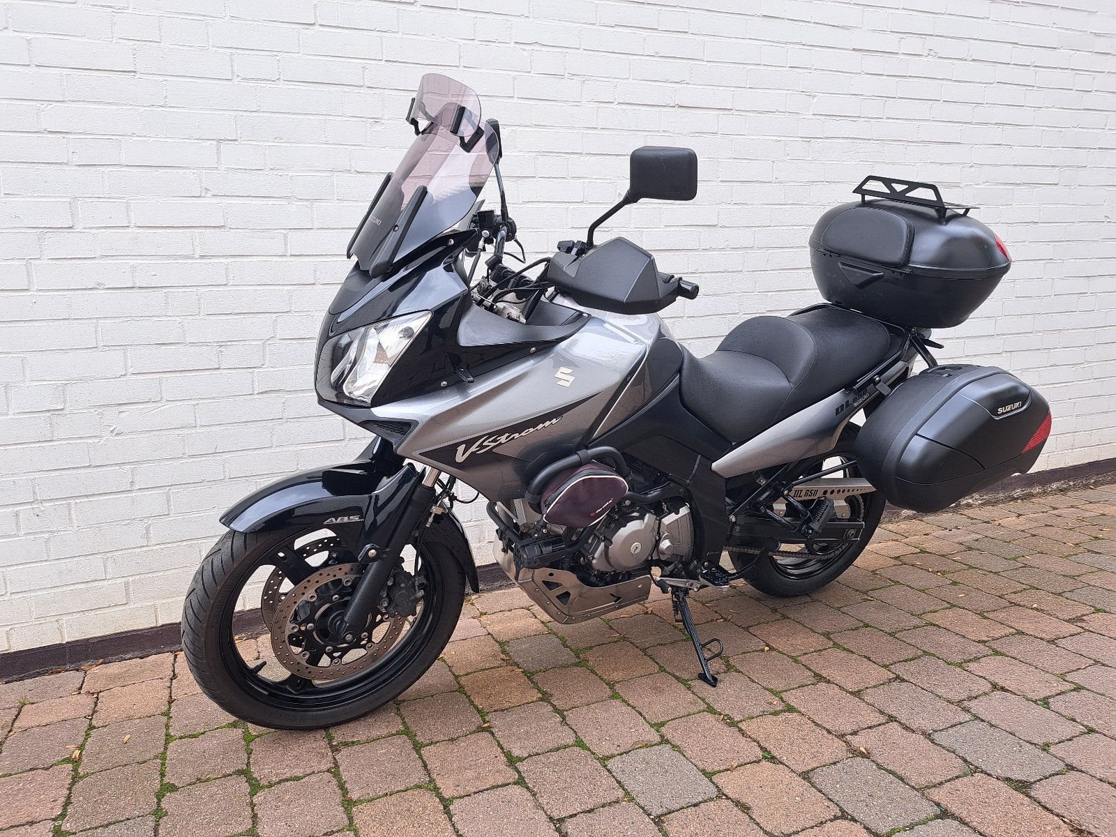 Suzuki DL650 V-Strom ABS mit Hauptständer, Sturzbügel, Griffheizung, Tourenscheibe, Seitenkoffer + Topcase, Tankrucksack, verstellbare Hebel, Zusatzscheinwerfer, LED-Blinker. Inspektion, Kettensatz und Vorderreifen neu. 1 Jahr gestzliche Sachmangelhaftung.